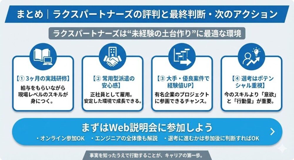 まとめ|ラクスパートナーズの評判を踏まえた最終判断と次のアクション