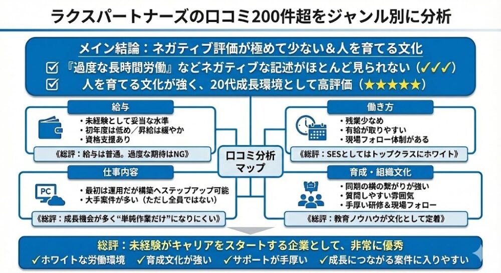 ラクスパートナーズの口コミ200件超をジャンル別に分析