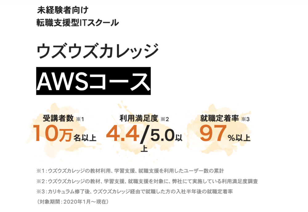 - 4 ウズウズカレッジ AWSコース 〜給付金で最大70%OFF!未経験からクラウドエンジニアへ〜