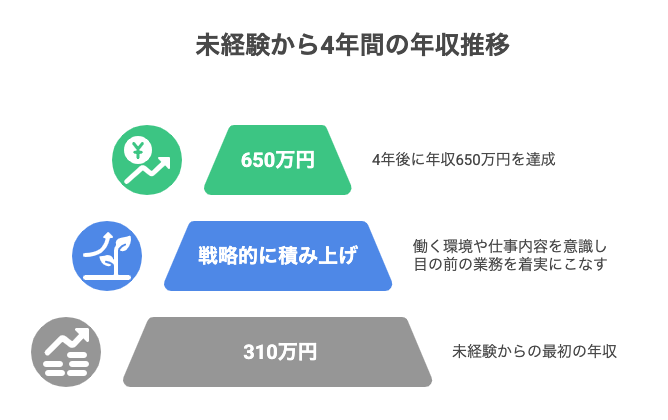 最初は年収がやや低めでも、スキル次第でしっかり上がっていくんだね!